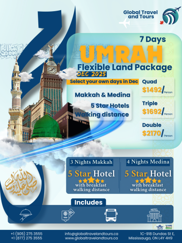Global Travel & Tours made our Umrah journey so smooth and peaceful. Everything from the visa to hotel bookings was handled perfectly. We felt supported every step of the way.